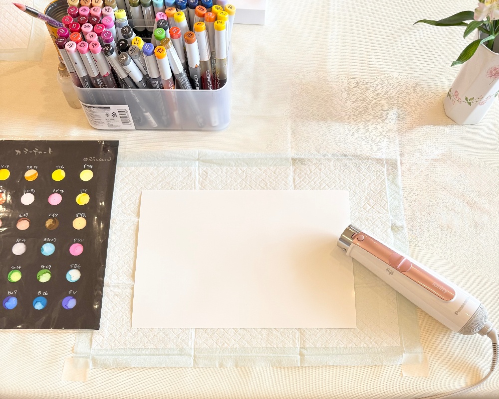 ドライヤーを使ってインクを広げることで基本的なアルコールインクアート体験ができます。