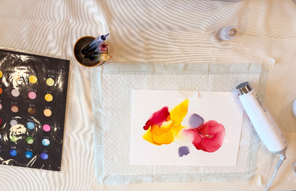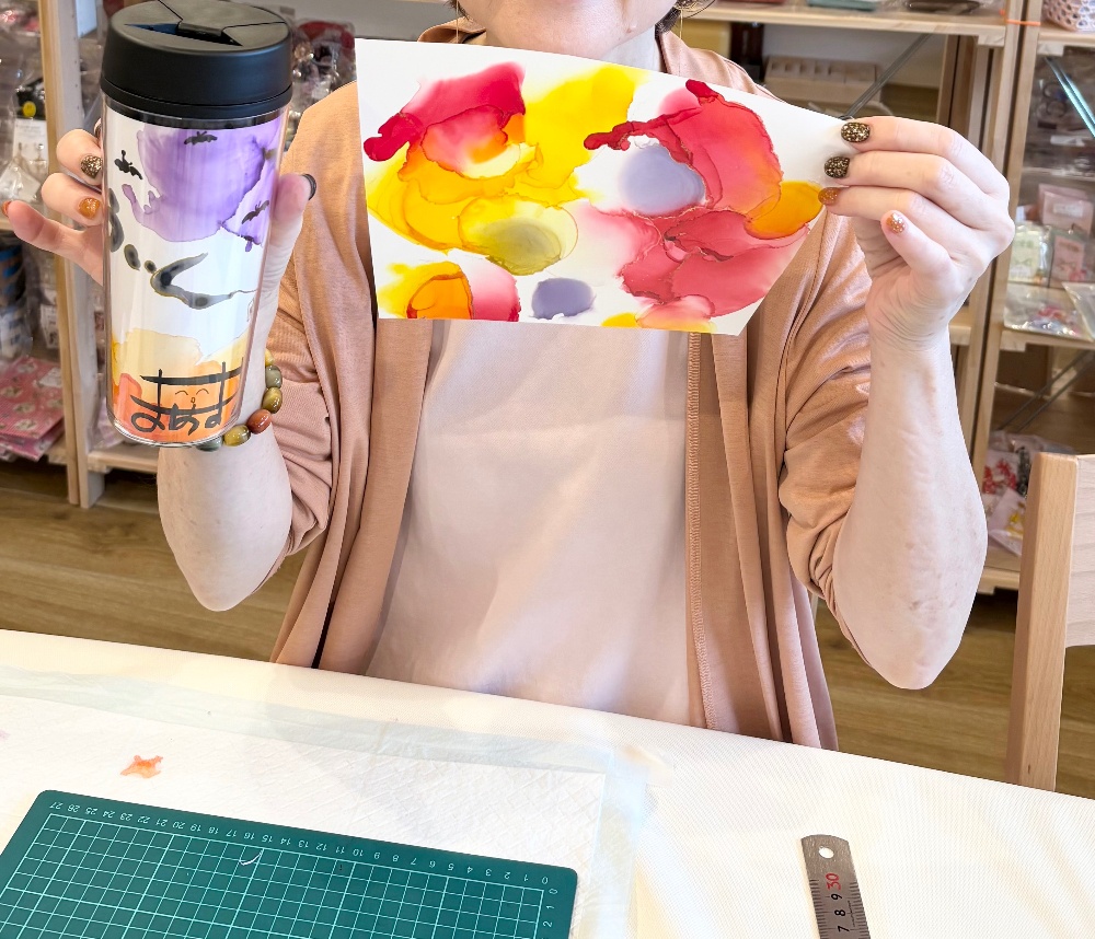 アルコールインクアートが初めての方でもアーティスト気分を味わいながら